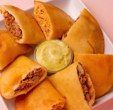 Fried, savory pastry turnover filled with various ingredients, similar to an empanada